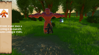 Here, you play as a wizard fighting against golems and collecting their parts to assemble new ones. Some combinations create basic golems (fire, ice, stone…), while others reveal stranger creations, all of which fill out a bestiary for you to complete.